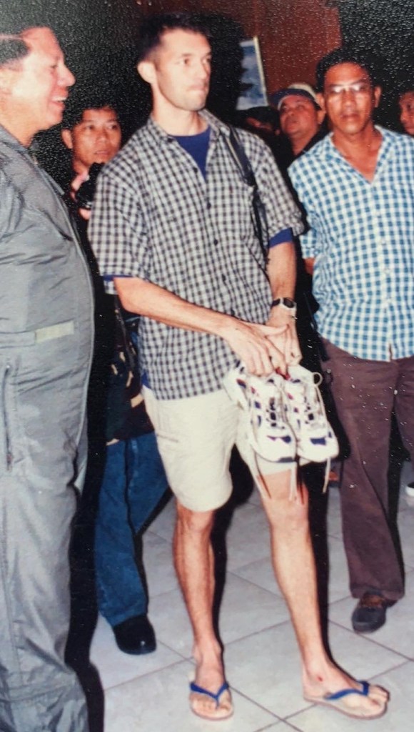 The two said they decided to escort him to Clark to make sure he makes it there safely. Both were aware the same guerrillas who staged the ambush the day before were staying in some of the huts in the villages along the way. With all the media coverage, the NPA already knew who the American was and local guerrillas supposedly issued a statement that they intend to find Lieutenant Washburn and make him a prisoner of war.